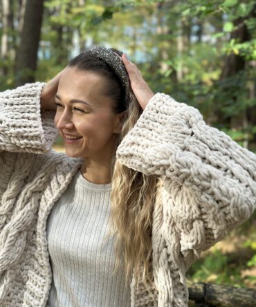 Sweter oversize ręcznie robiony – piaskowy beż, długi